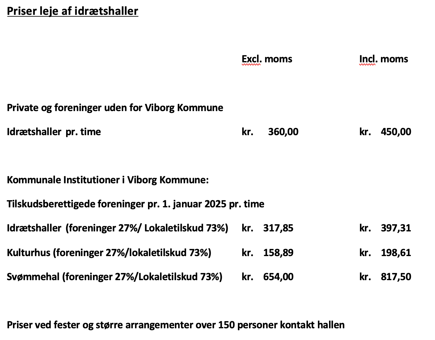 Vi har to idrætshaller med international håndbold baner, disse bliver bl.a. brugt til fodbold, volleyball, badminton, hockey, tennis og meget andet, ikke idræts aktiviteter kan nævnes bingo, teater og koncerter og meget mere. Der er plads til henholdsvis 560 og 1080 personer alt efter aktiviteterne.